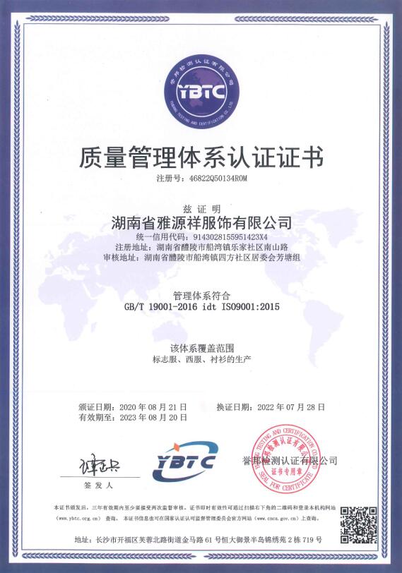 1、企業(yè)概況 湖南省雅源祥服飾有限公司地處湘贛邊境素有瓷城之稱的醴陵郊區(qū),企業(yè)創(chuàng)建于1995年,是行政執(zhí)法制服、被裝的生產(chǎn)企業(yè)。2、組織機(jī)構(gòu) 跟隨改革開(kāi)放的步伐,我公司不斷發(fā)展壯大,公司董事會(huì)下設(shè)總經(jīng)理辦公室、生產(chǎn)部、技術(shù)部、質(zhì)檢部、財(cái)務(wù)部、采購(gòu)部、業(yè)務(wù)部等部門(mén),下設(shè)有流水線西服生產(chǎn)車(chē)間、標(biāo)志服生產(chǎn)車(chē)間、襯衣生產(chǎn)車(chē)間、... [更多]